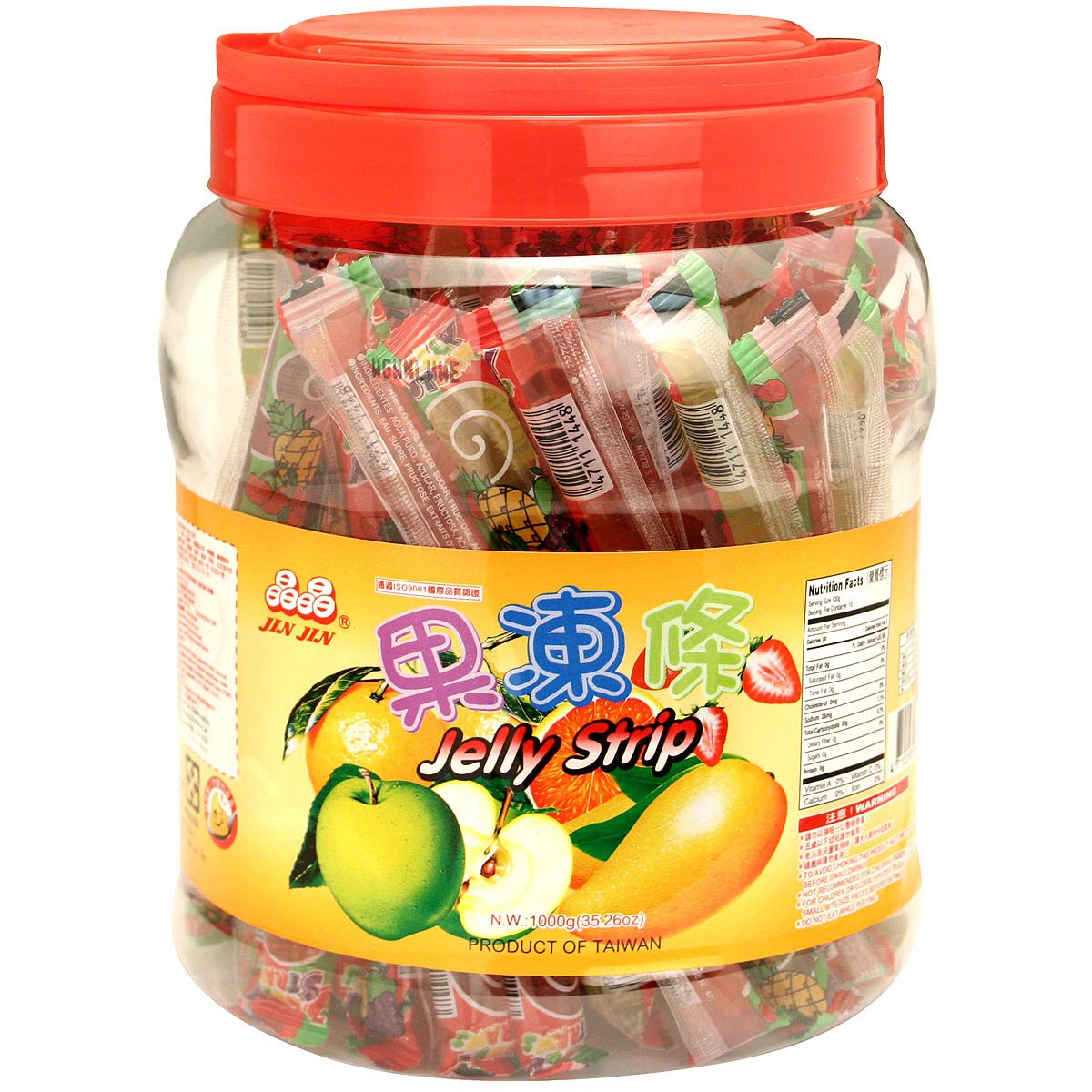 Deliciosas gelatinas em bastão nos sabores Abacaxi, Lichia, Maçã Verde, Morango e Uva.